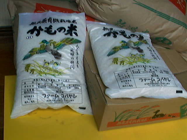 JAS有機認証かもの田んぼで生産されたかもの米2kg1袋(1700円)を抽選で5名の方にプレゼントいたします。