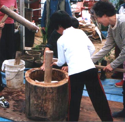 | 餅つき。 | かも汁。 | 黒豆、黒米大福、黒米おこわ。 | ||