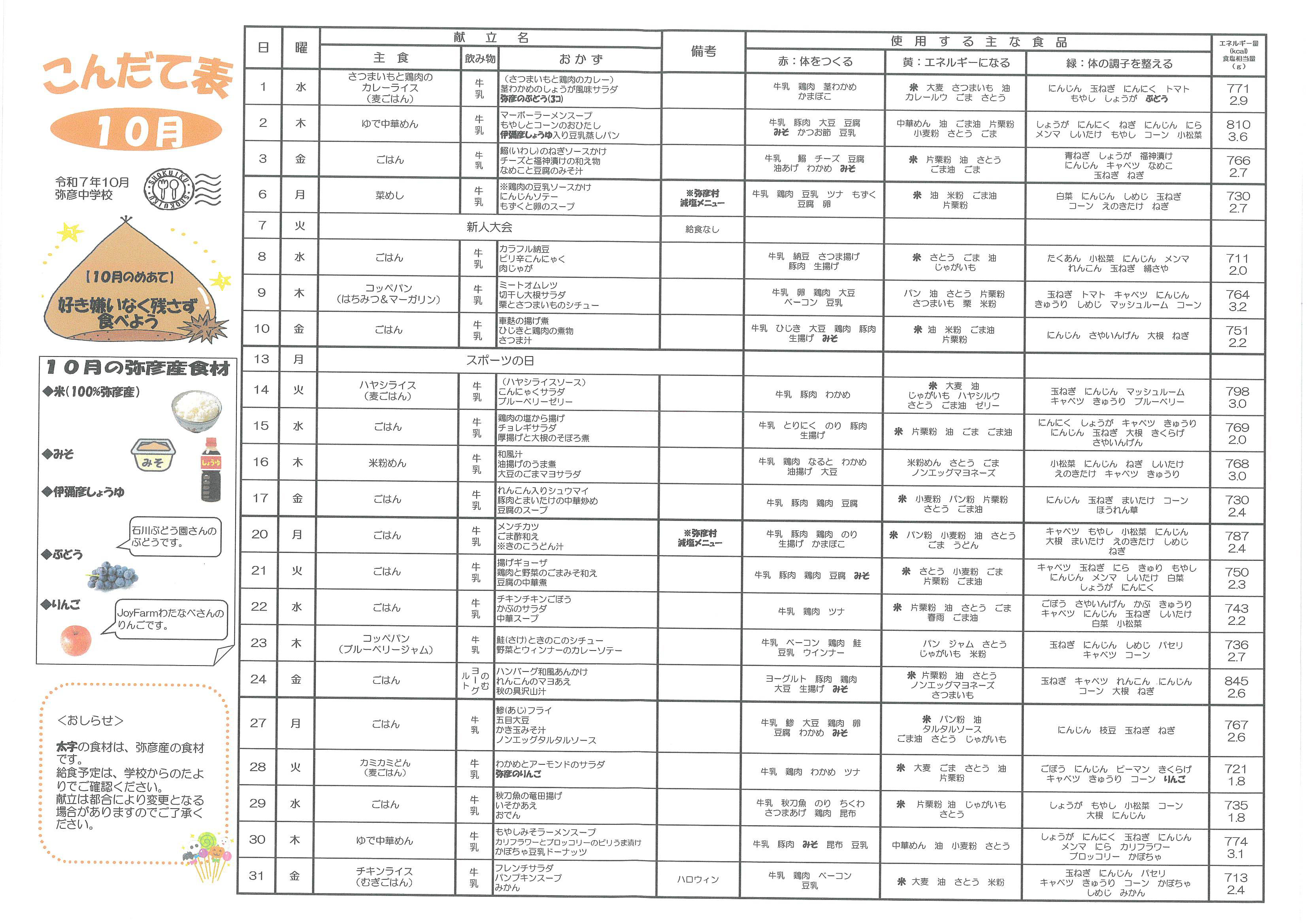 「献立表」ダウンロード